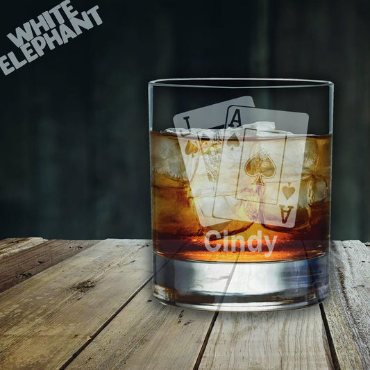 Personalised Blackjack Playing Cards Laser Etched Whiskey / High-Ball / Pint / Tankard Glass