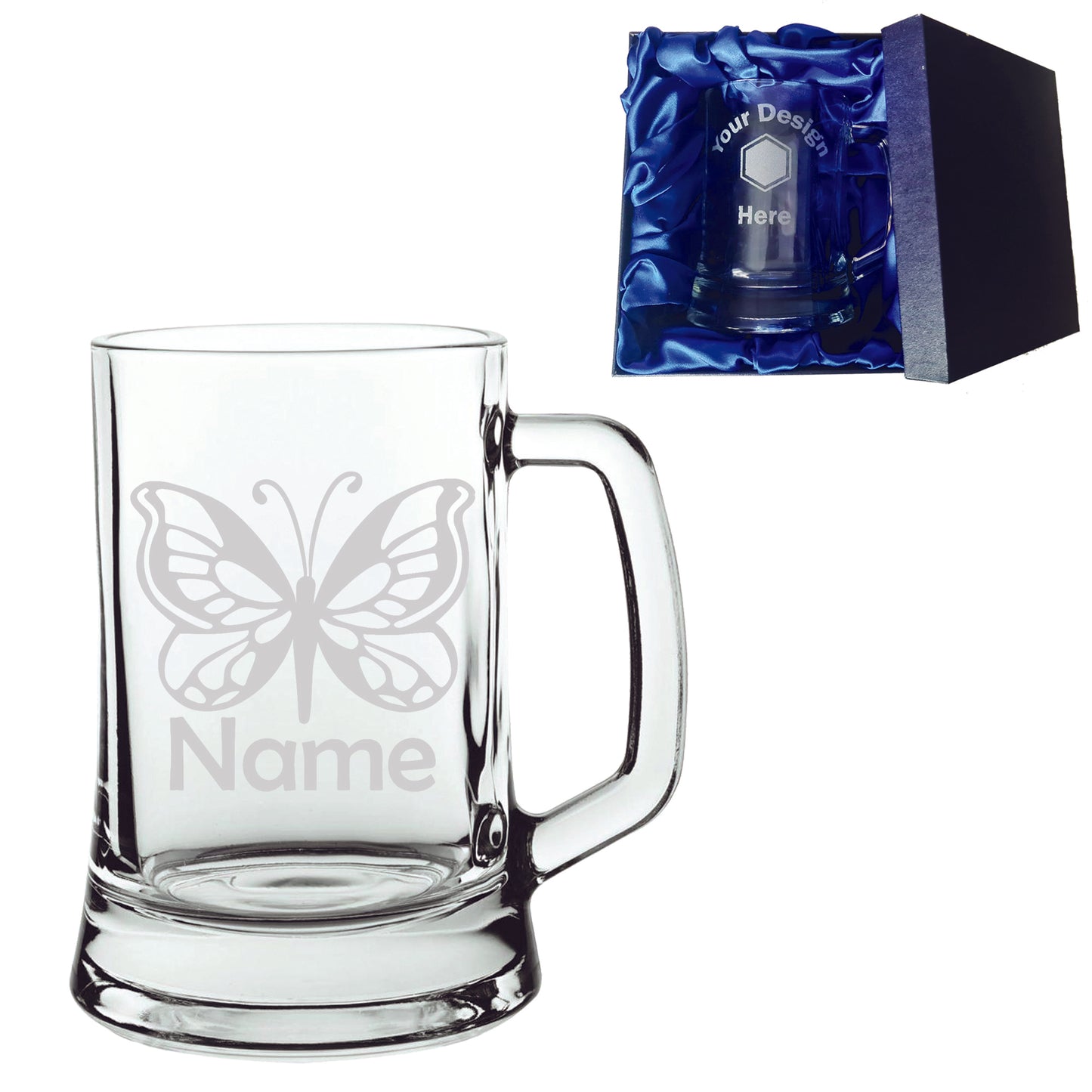 Personalised Butterfly Laser Etched Whiskey / High-Ball / Pint / Tankard Glass