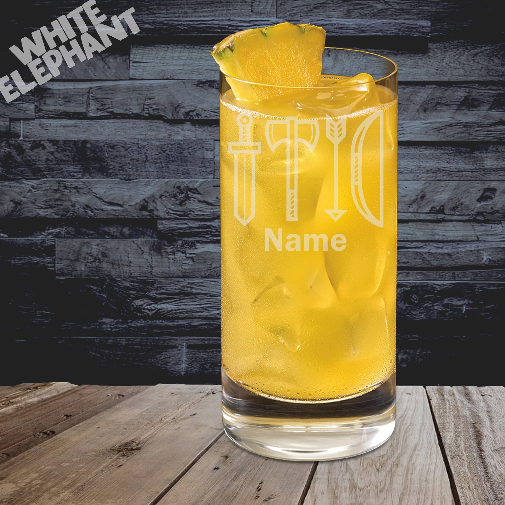 Personalised Sword, Axe, Arrow & Bow Laser Etched Whiskey / High-Ball / Pint / Tankard Glass