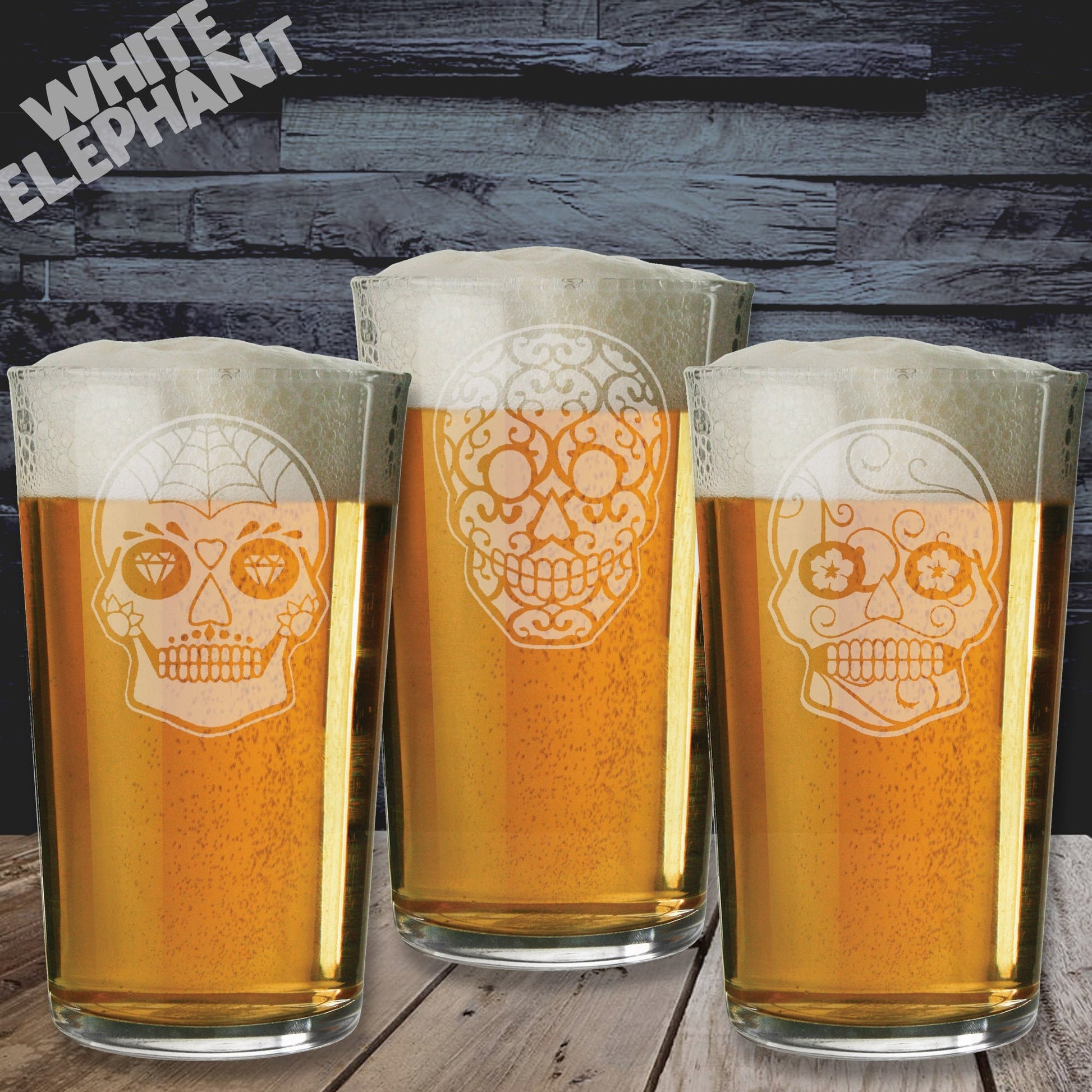 Sugar Skull 3 Laser Etched Whiskey / High-Ball / Pint Glass Gift Set